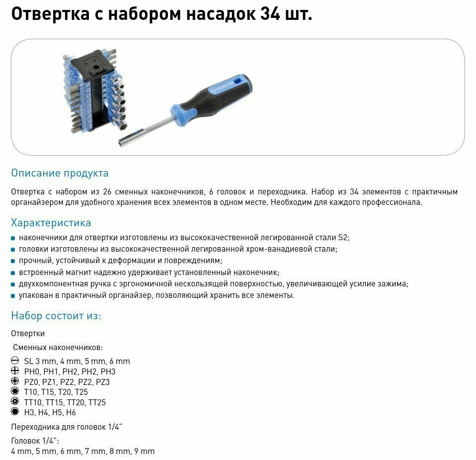 Набор отверток и бит, 34 пр. информация: