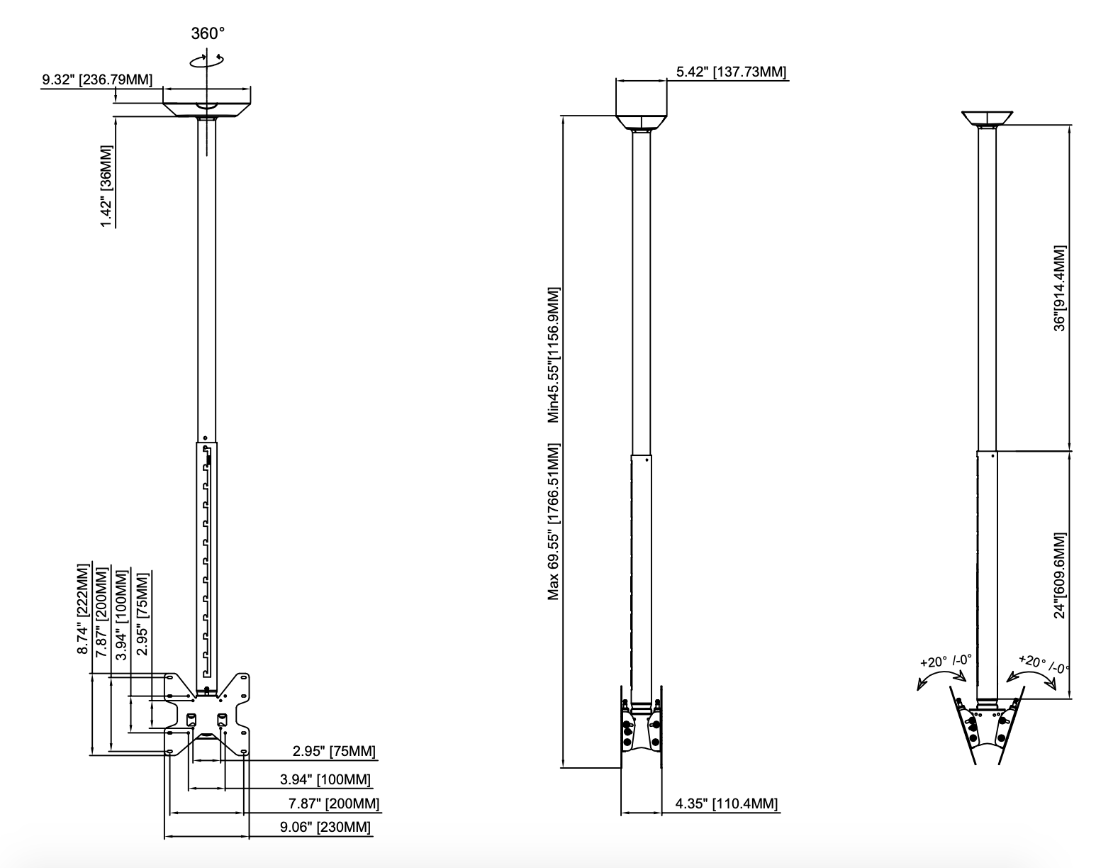 [C37D 60A] Потолочное крепление Wize Pro C37D60A для 2-х дисплеев 1346+, VESA 75x75, 100x100, 200x100, 200x200, 400х400 мм, наклон +20°, поворот 360°,