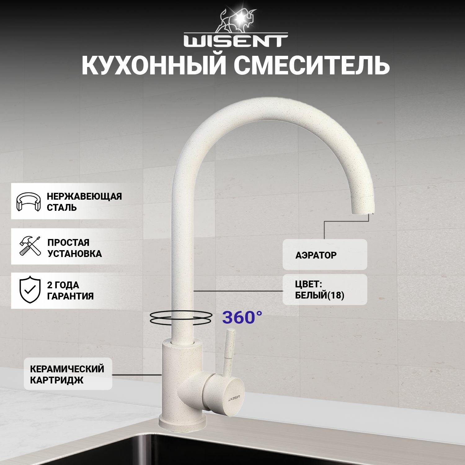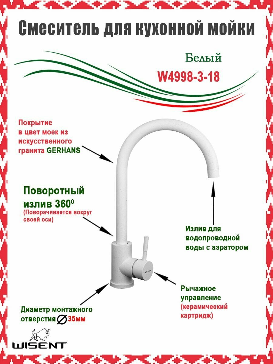 Смеситель для кухни (белый) WISENT W4998-3-18 информация: