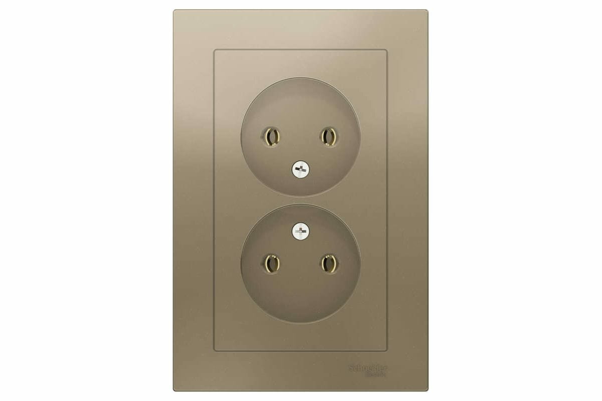 Розетка 2-м ATLAS DESIGN без заземл. 16А в сборе шампань Schneider Electric ATN000520, 1шт информация: