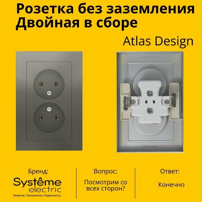 Отзывы на Розетка электрическая двухместная Systeme Electric Atlas Design без заземления в сборе 16А, Сталь ATN000920 - 4 шт.