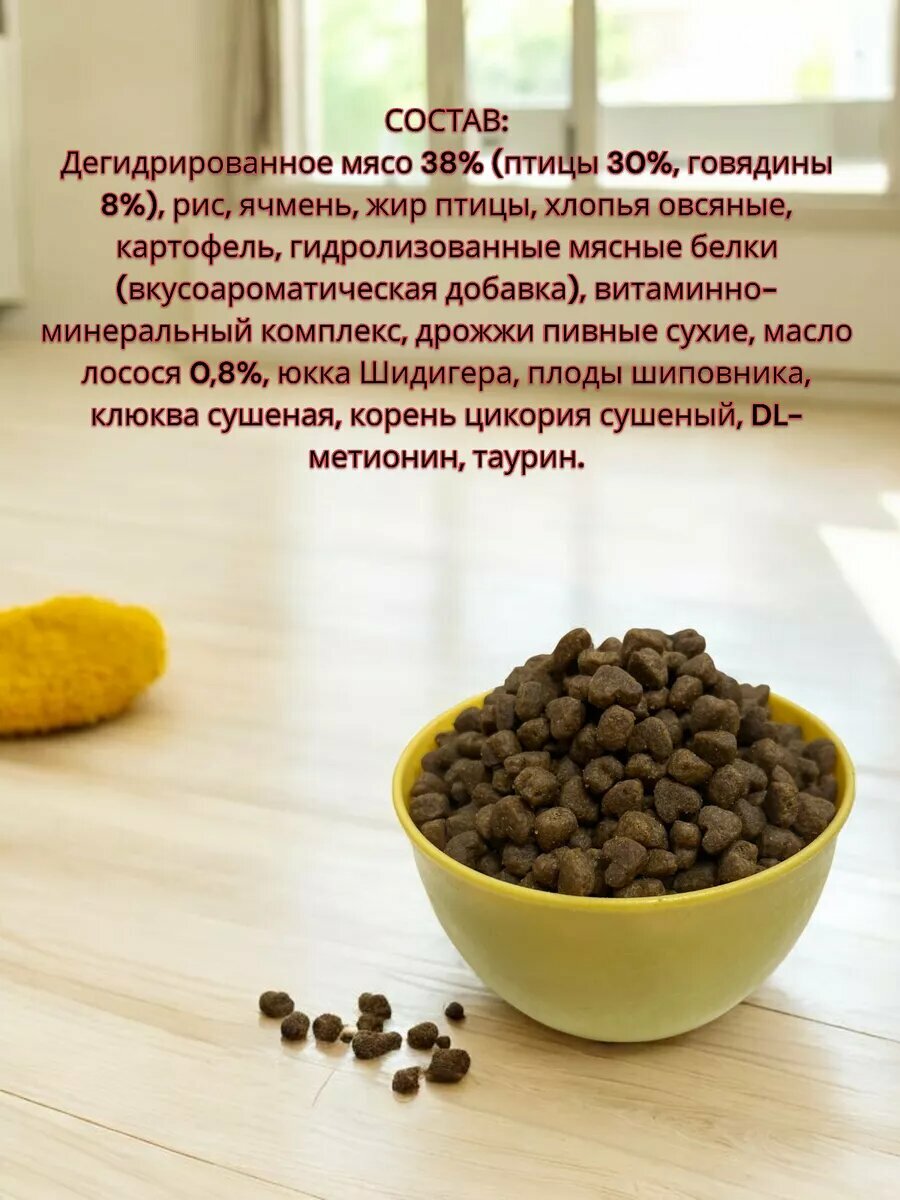 | Дополнительная информация | специальные добавки (на 1 кг): юкка шидигера 300 мг, таурин 0,12%, шиповник 400 мг, глюкозамин 350 мг, клюква сушеная 300 мг, хондроитин 100 мг, цикорий 100 мг |