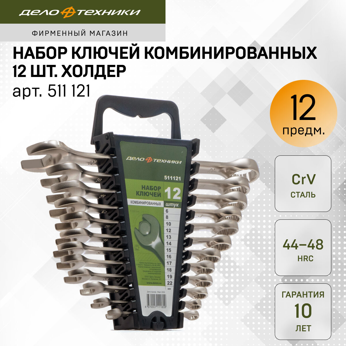 Набор ключей комбинированных 12 шт. Дело техники (от 6 до 22мм) евро пластиковый холдер информация: