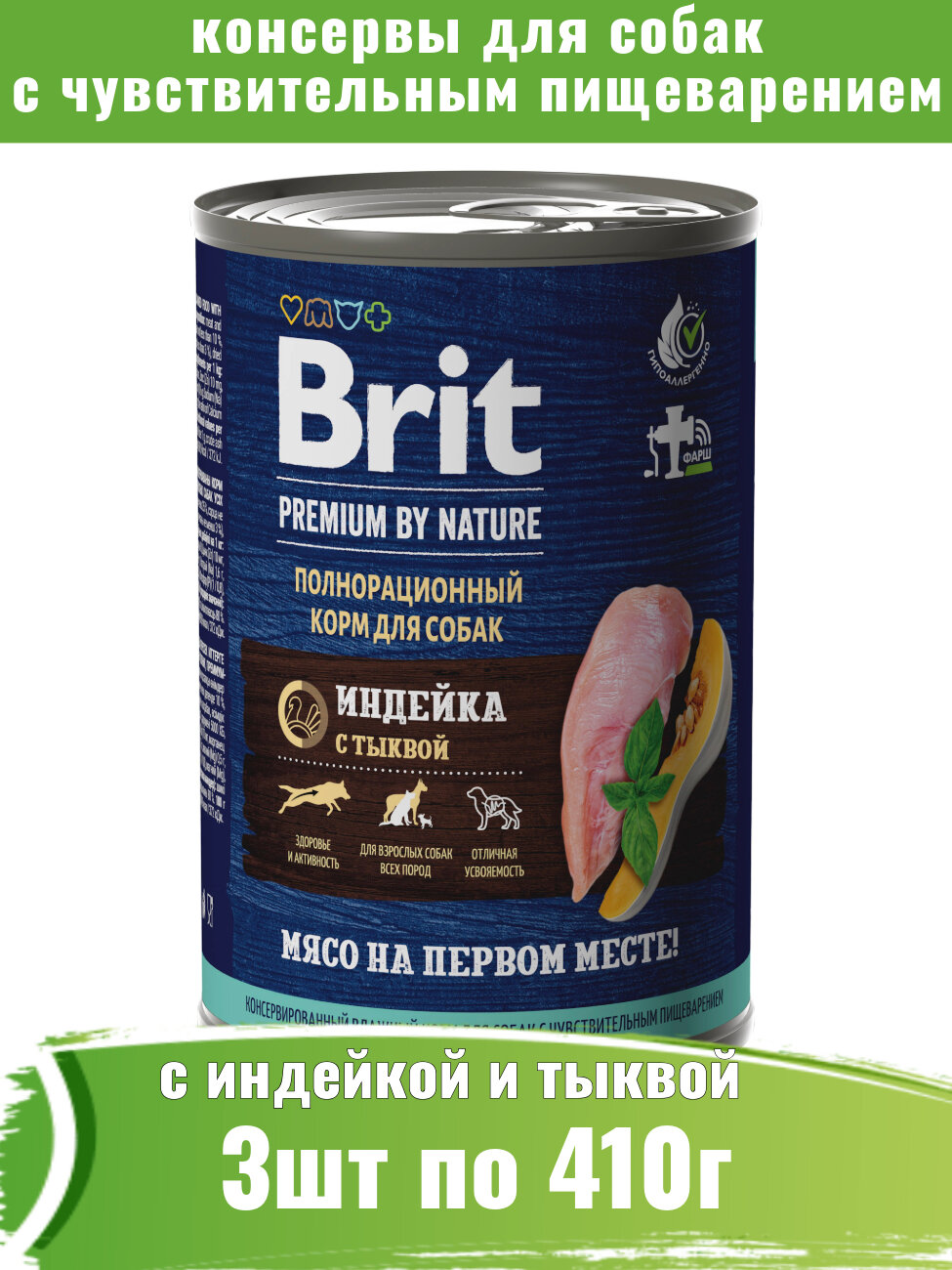 BRIT PREMIUM BY NATURE DOG для взр собак всех пор с чувств пищ с индейкой и тыквой банка 410 гр 410 гр х 6 шт 1 167 ₽