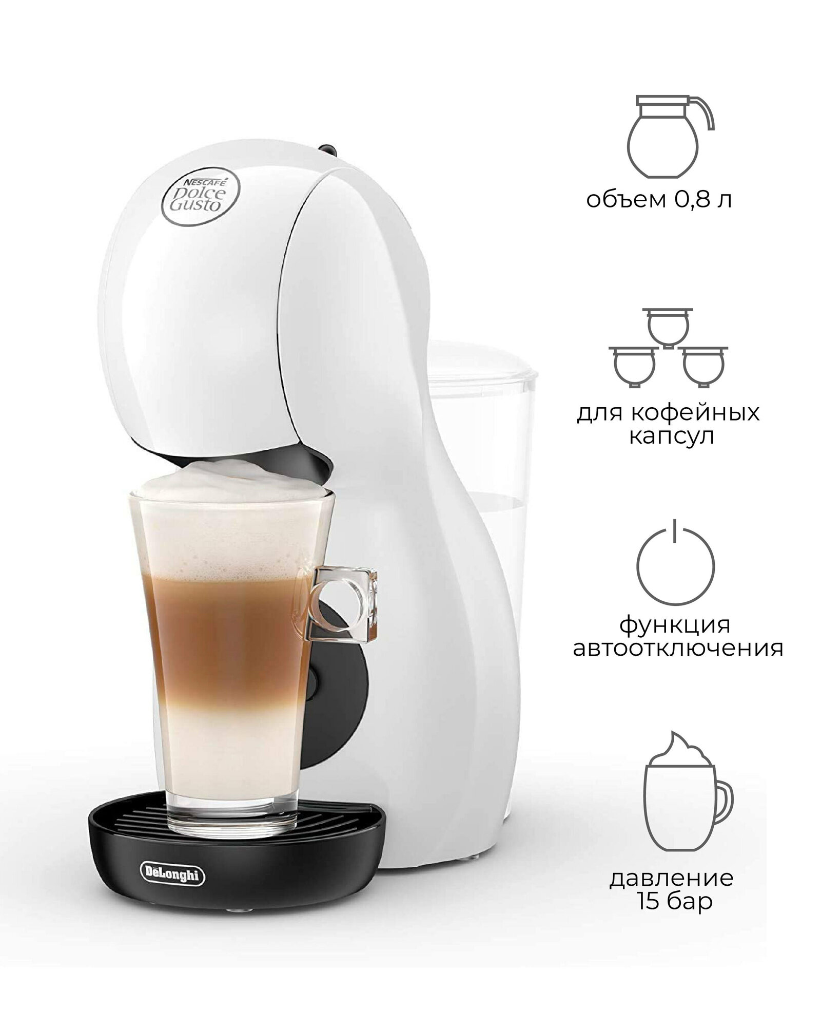 Капсульная машина Nescaf Dolce Gusto Piccolo XS Delonghi EDG 110.WB, 0,8 л, цвет белый/черный информация: