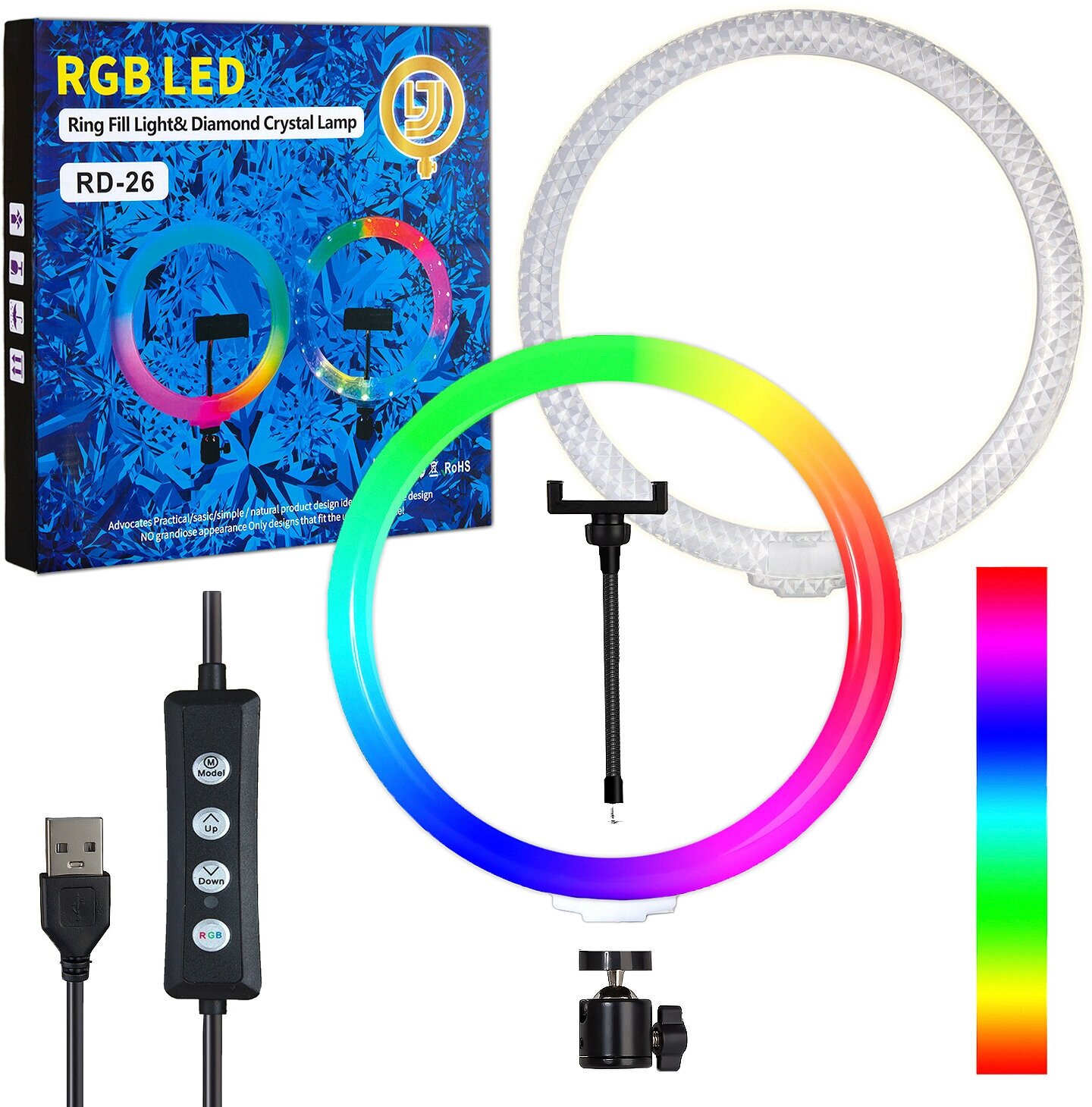 Селфи кольцо 26 см RGB RD-26 Crystal Diamond Lamp (двухсторонние) информация: