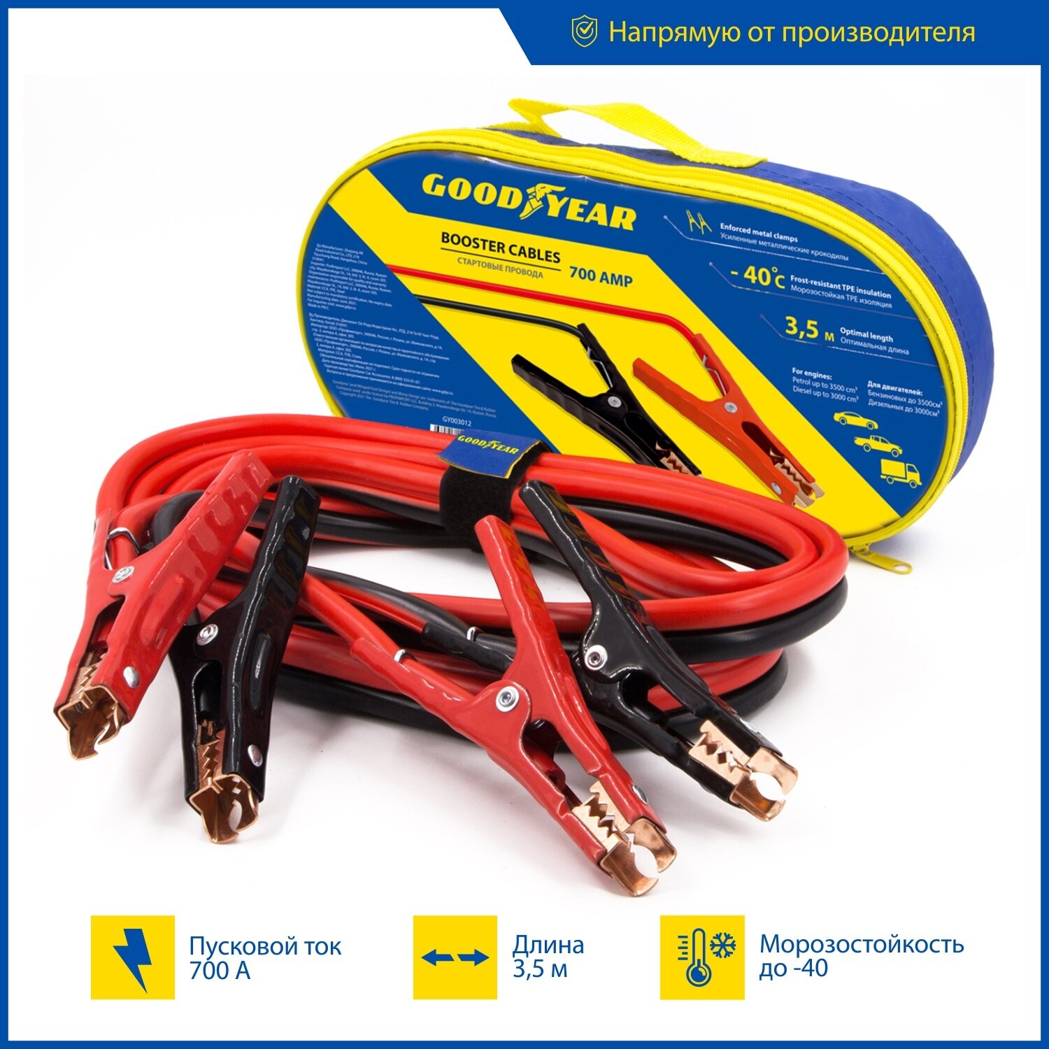 Провода прикуривания Goodyear 700A, 3,5м (сумка) информация: