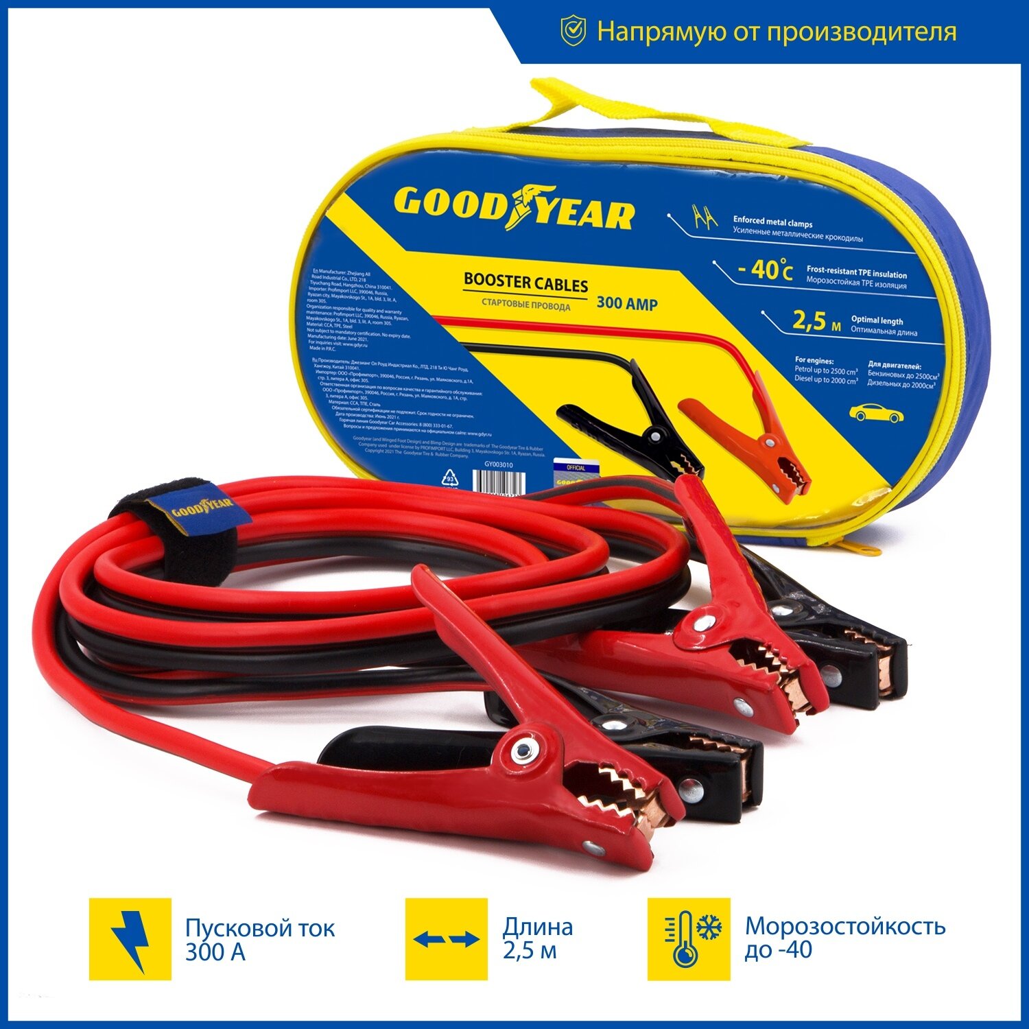 10 цен на Провода прикуривания Goodyear 300A, 2,5м (сумка)