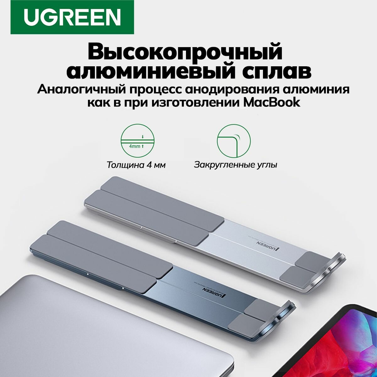 UGREEN. Алюминиевая регулируемая подставка для ноутбука (80348)