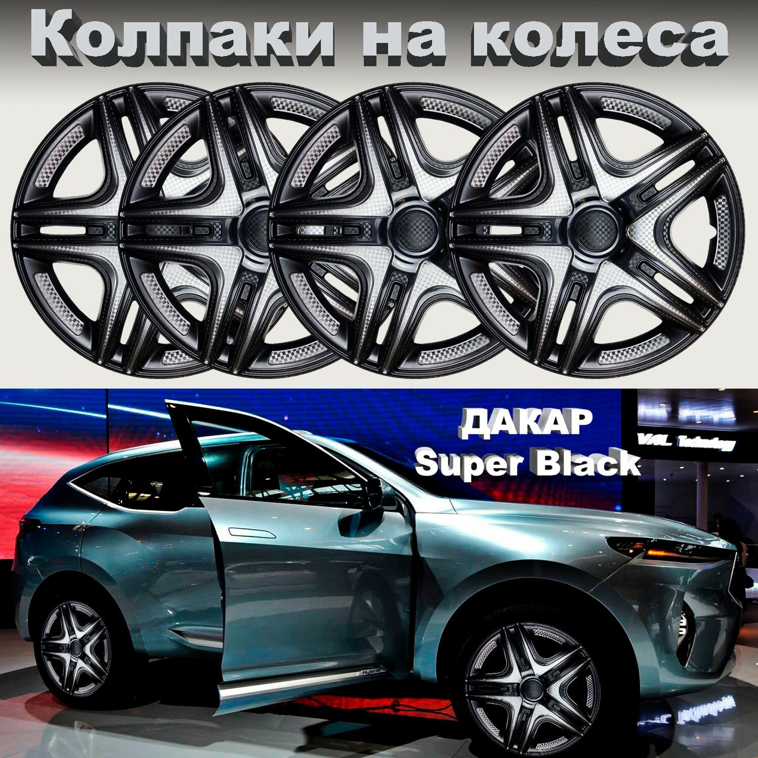 Колпаки на колеса R14 Дакар Super Black, цвет черный/серебристый, 4 штуки в комплекте