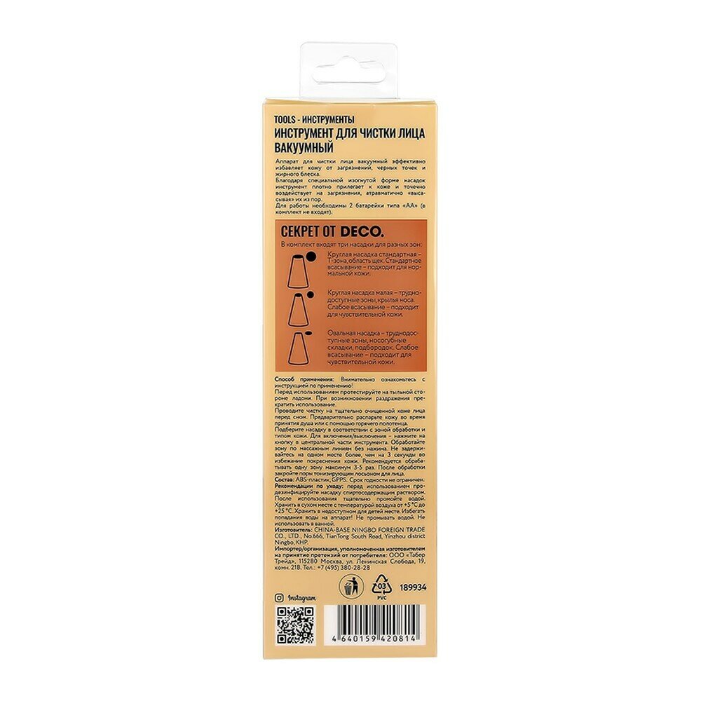 DECO. Инструмент для чистки лица вакуумный (3 насадки) информация: