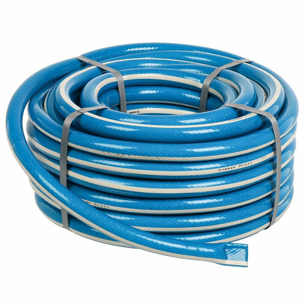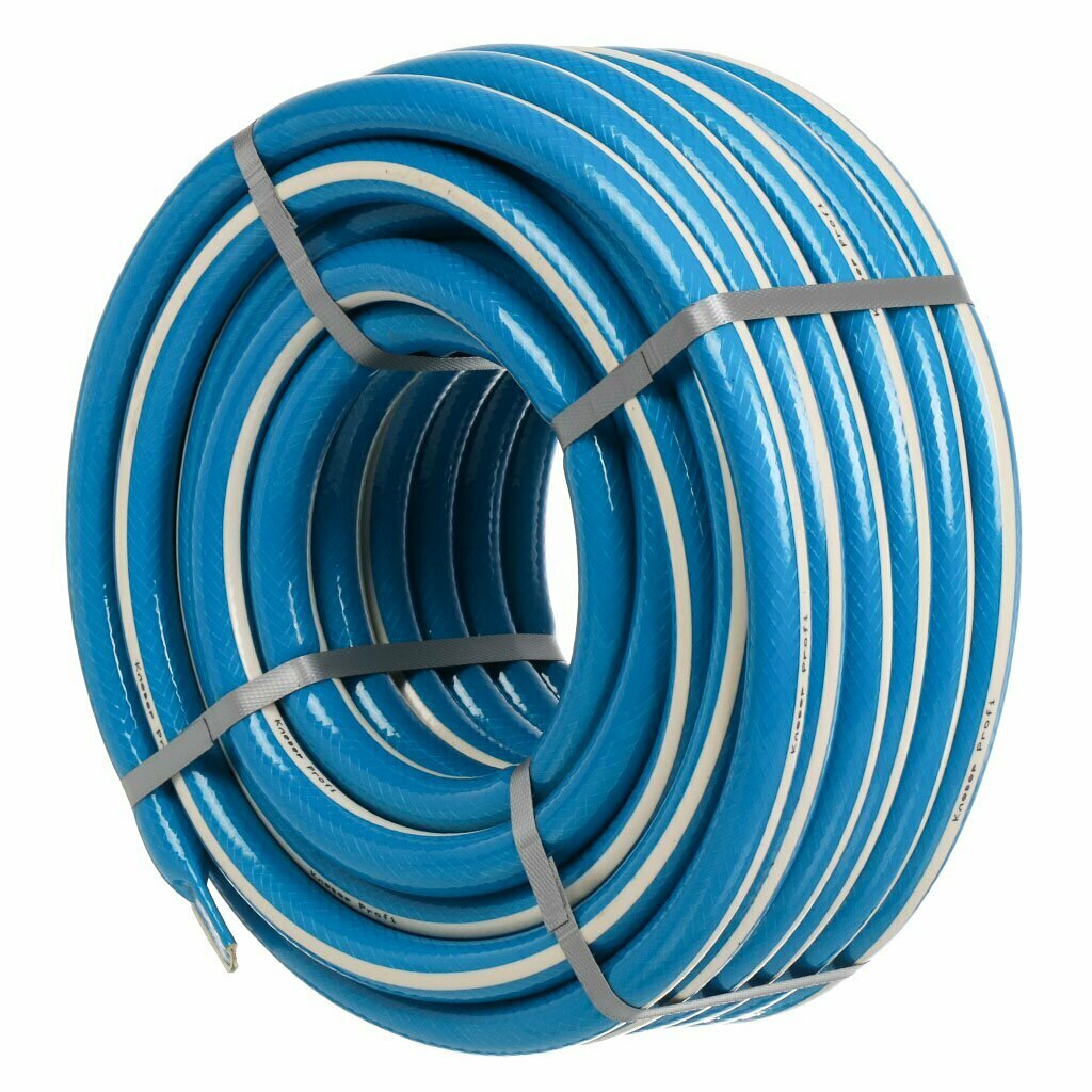 Отзывы на Шланг поливочный, 3/4 '', 20 мм, 15 атм, армированный, 25 м, 3 слоя, Клевер, Профи, ПВХ, бело-голубой