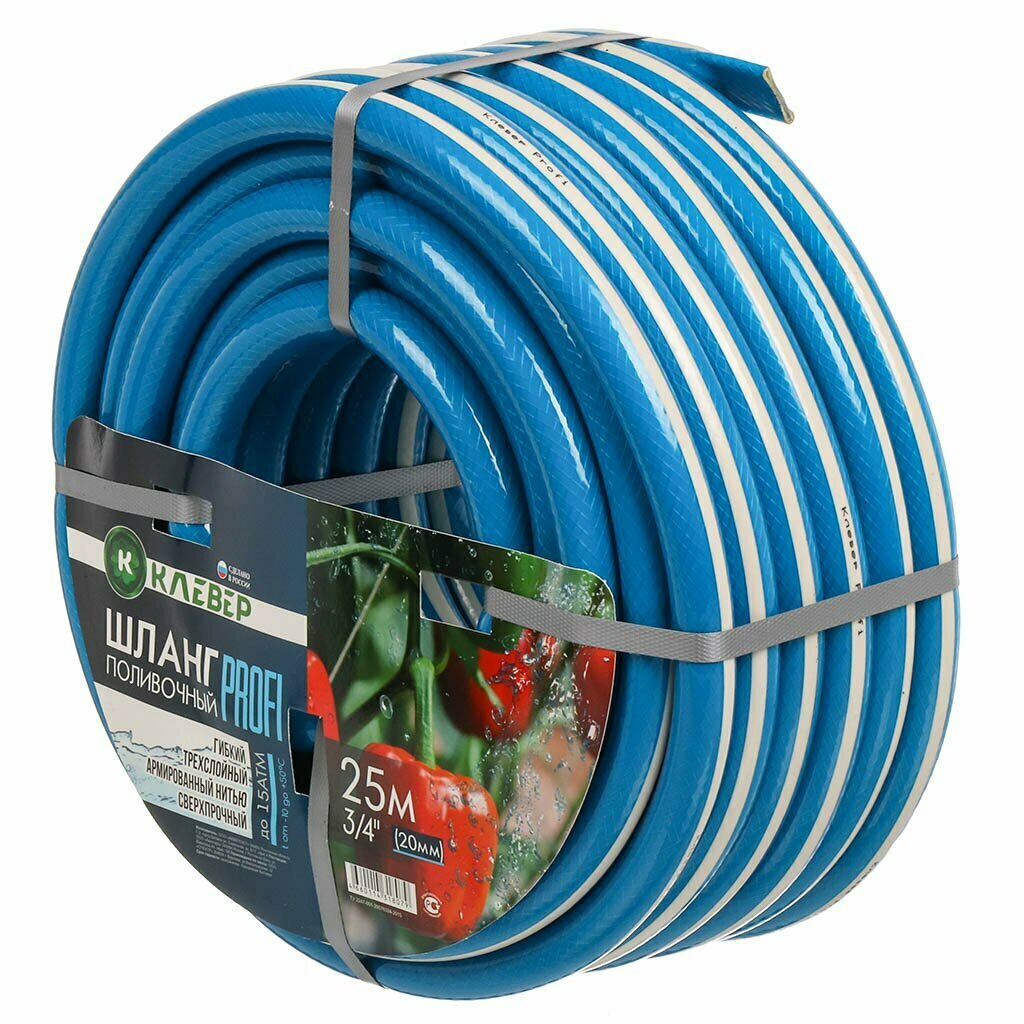 Шланг поливочный садовый 3/4 25 м армированный трехслойный ПВХ, диаметр 20 мм, Клевер 2 452 ₽