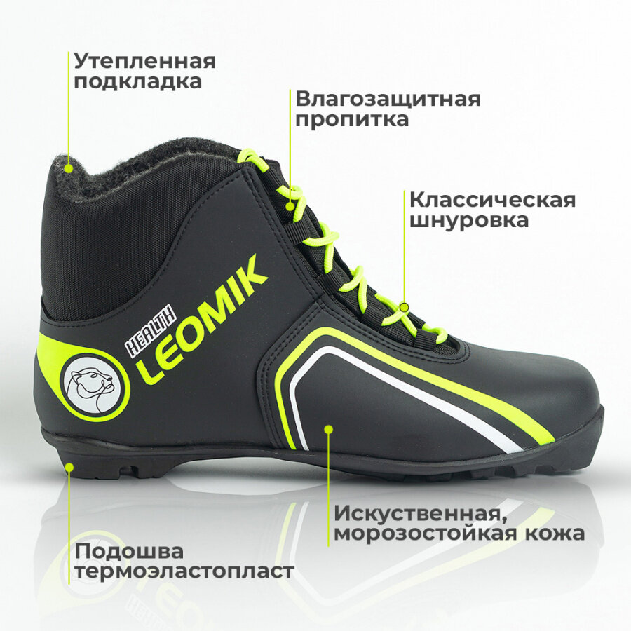 Ботинки лыжные Leomik Health (green) черные размер 41 для беговых прогулочных лыж крепление NNN 3 280 ₽