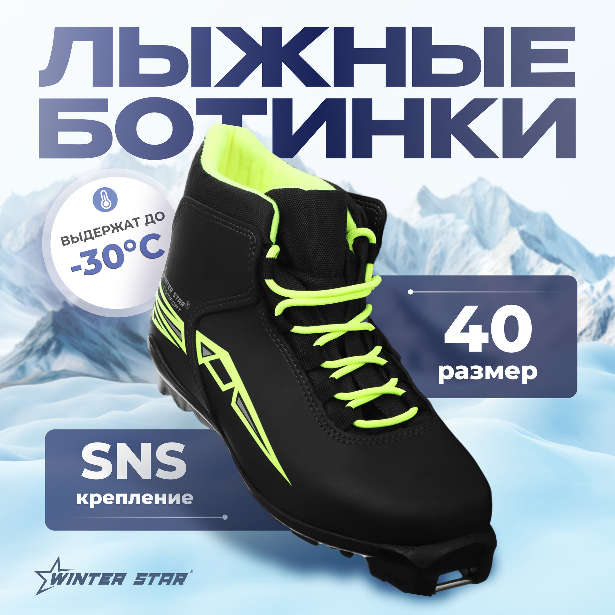 Ботинки лыжные Winter Star comfort, SNS, р. 40, цвет чёрный/неон 4 005 ₽