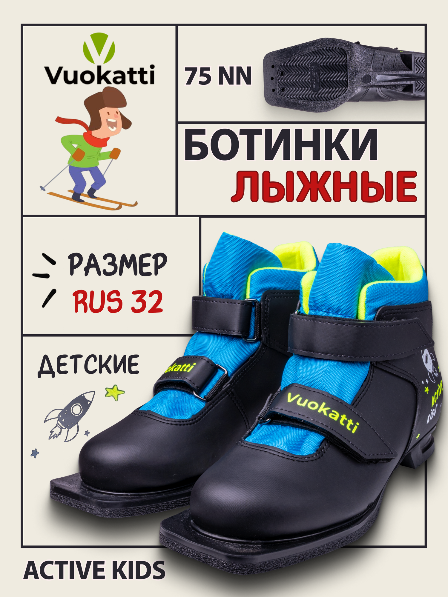 Ботинки лыжные детские 75мм Vuokatti Active Kids RU32 EU33 СМ19,5 информация: