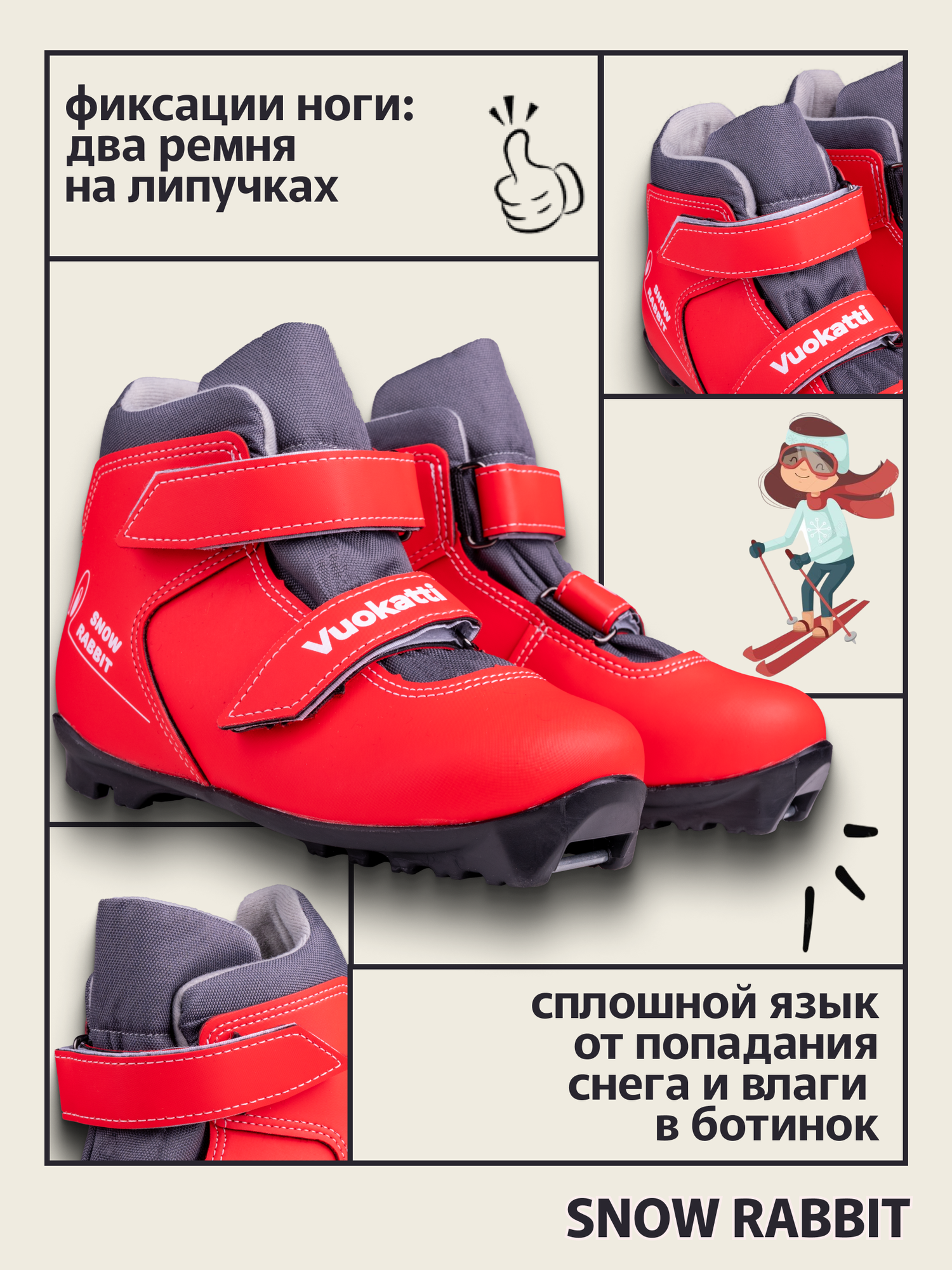 Лыжные ботинки NNN детские Vuokatti Snow Rabbit Red RU36 EU37 CM23 3 970 ₽