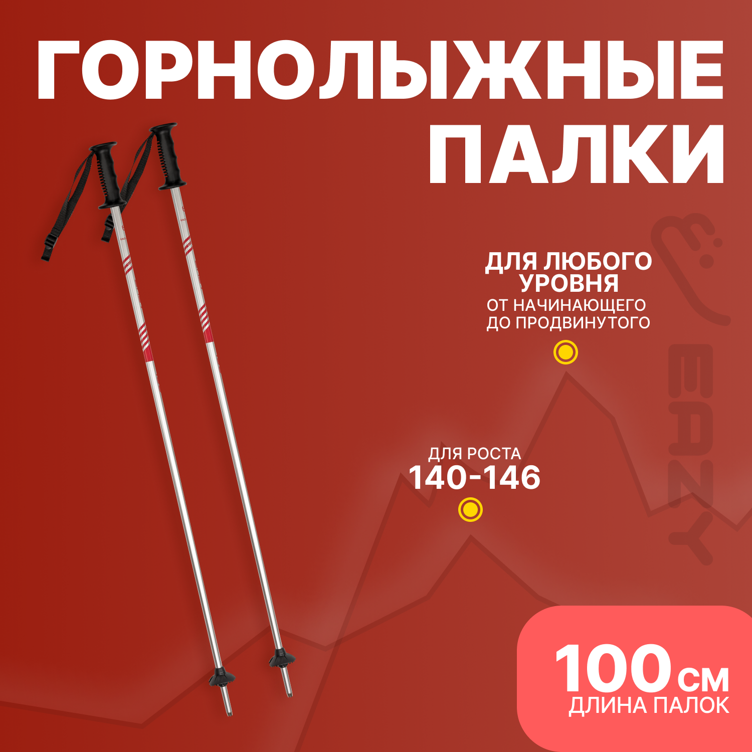 Горнолыжные палки для детей Eazy 100 см, Рост 140-146 см информация: