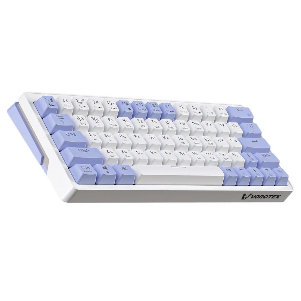 Ультракомпактная (60%) игровая беспроводная клавиатура VOROTEX K630W Yellow Switch с русской раскладкой, цвет белый/фиолетовый информация:
