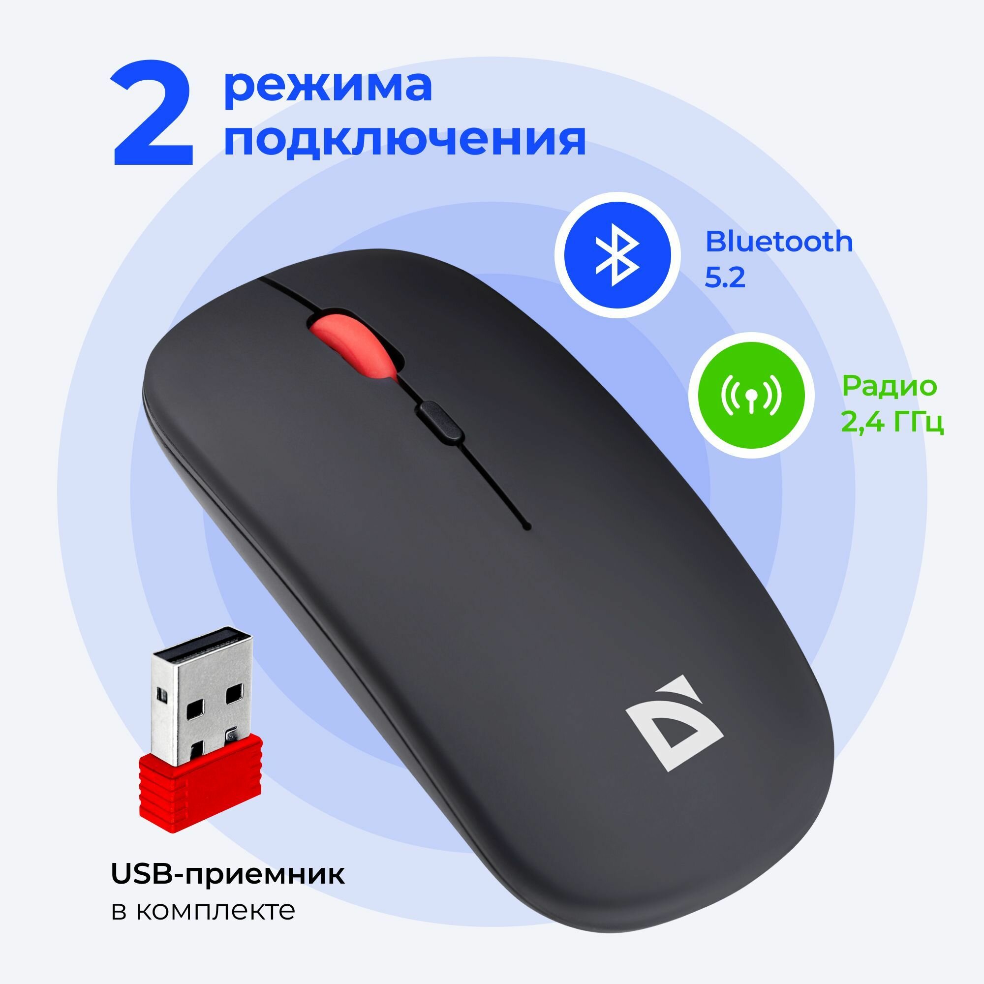 Defender Оптическая мышь Defender Vitrual MB-635 52635, беспров., 3кн.+скр., бесшумное нажатие, черный (USB, Bluetooth) (ret) 485 ₽