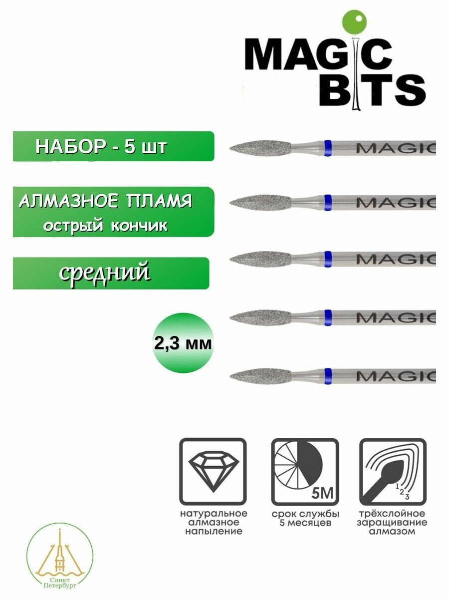Magic Bits Фреза Алмазное пламя 2.3 мм острый кончик с натуральным напылением средне-мягкого абразива