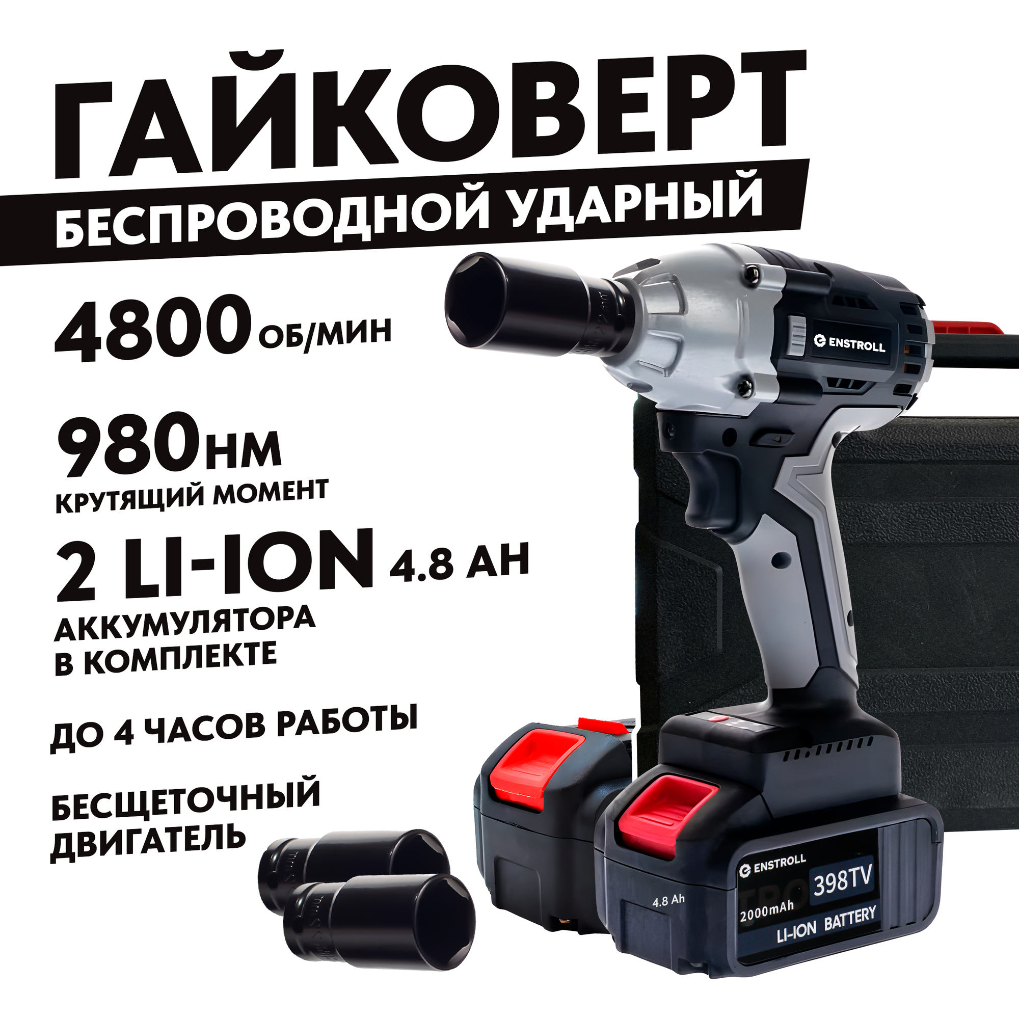 Гайковерт ударный бесщеточный с 2 АКБ в кейсе, 21В Аккумуляторный гайковерт, Гайковерт Enstroll информация: