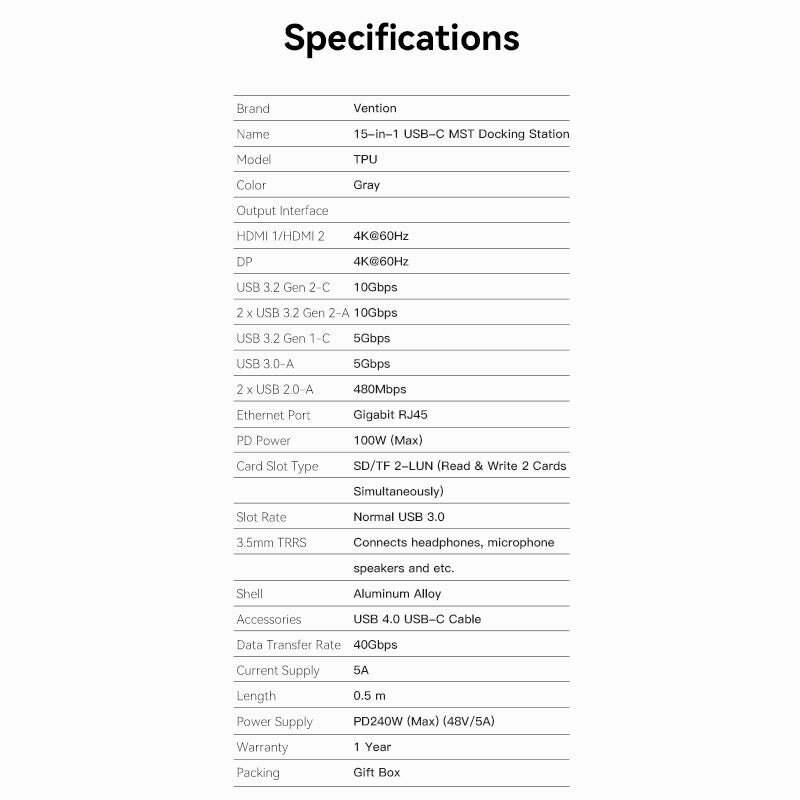 Док-станция Vention 15-in-1, серый (TPUH0) информация: