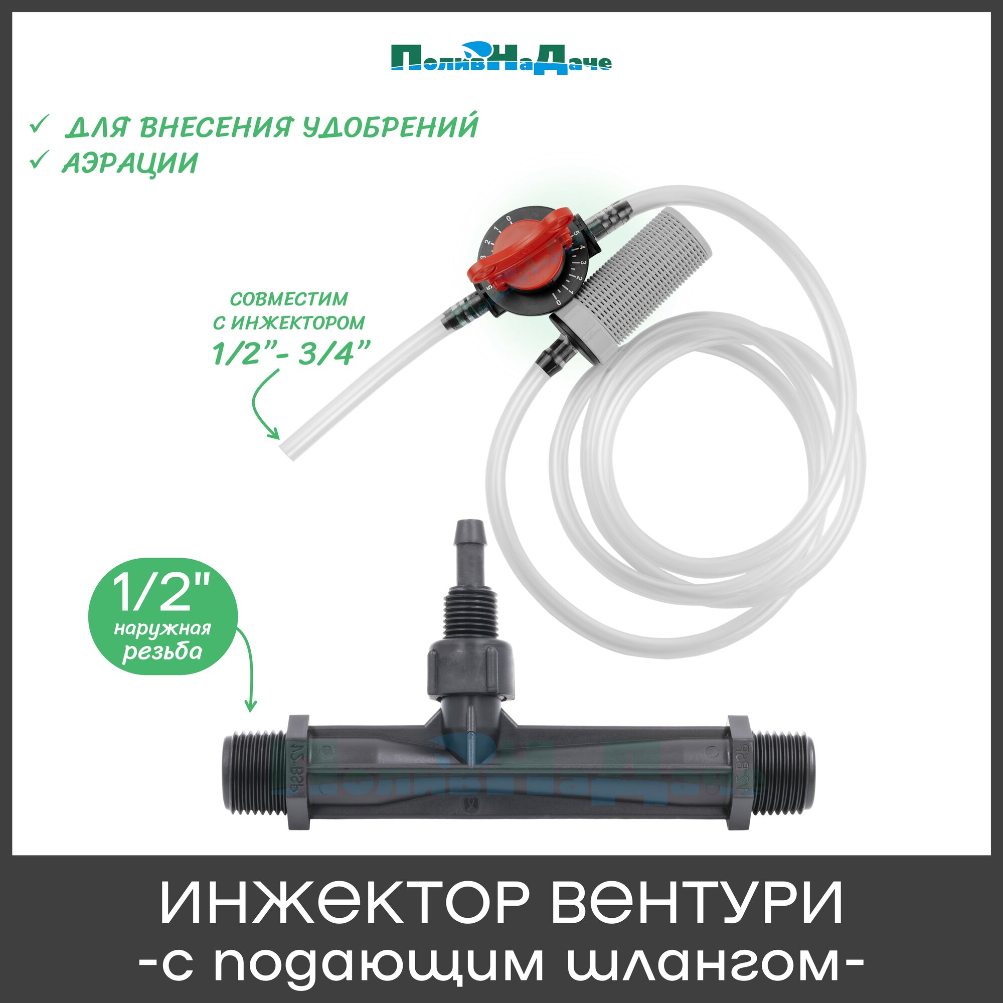 Отзывы на Инжектор Вентури 1/2" (с подающим шлангом), поток 0,29-0,81 м3/ч при 0,7-9,5 bar, мощность всасывания 3-37 л/ч