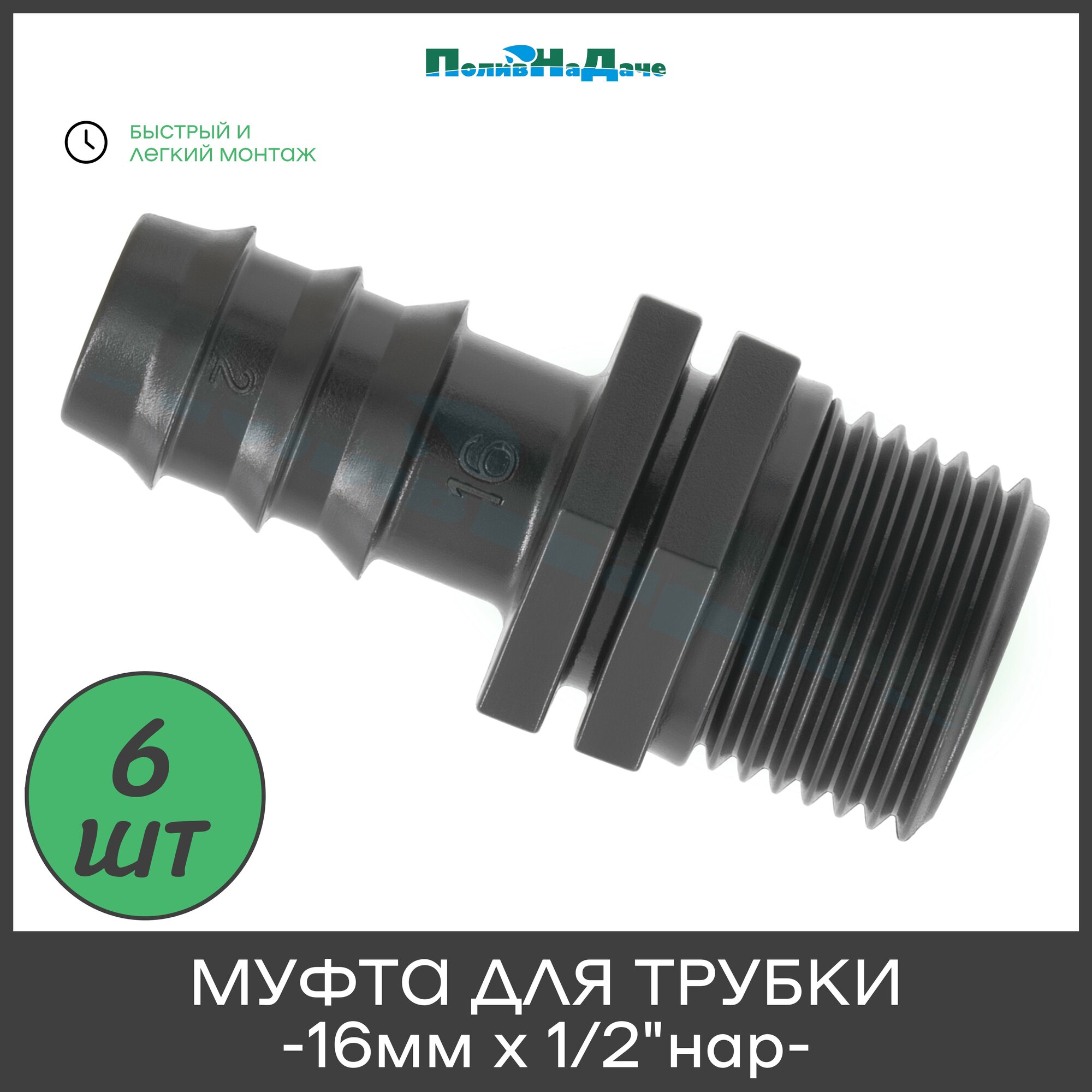 Муфта для капельной трубки 16 мм х 1/2" нар. (6 шт)