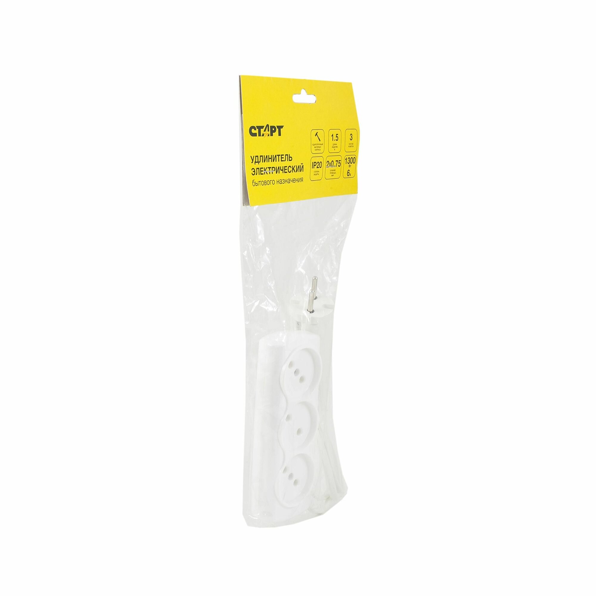 Удлинитель Старт S 3x1, 3 розетки, 1,5 м, белый
