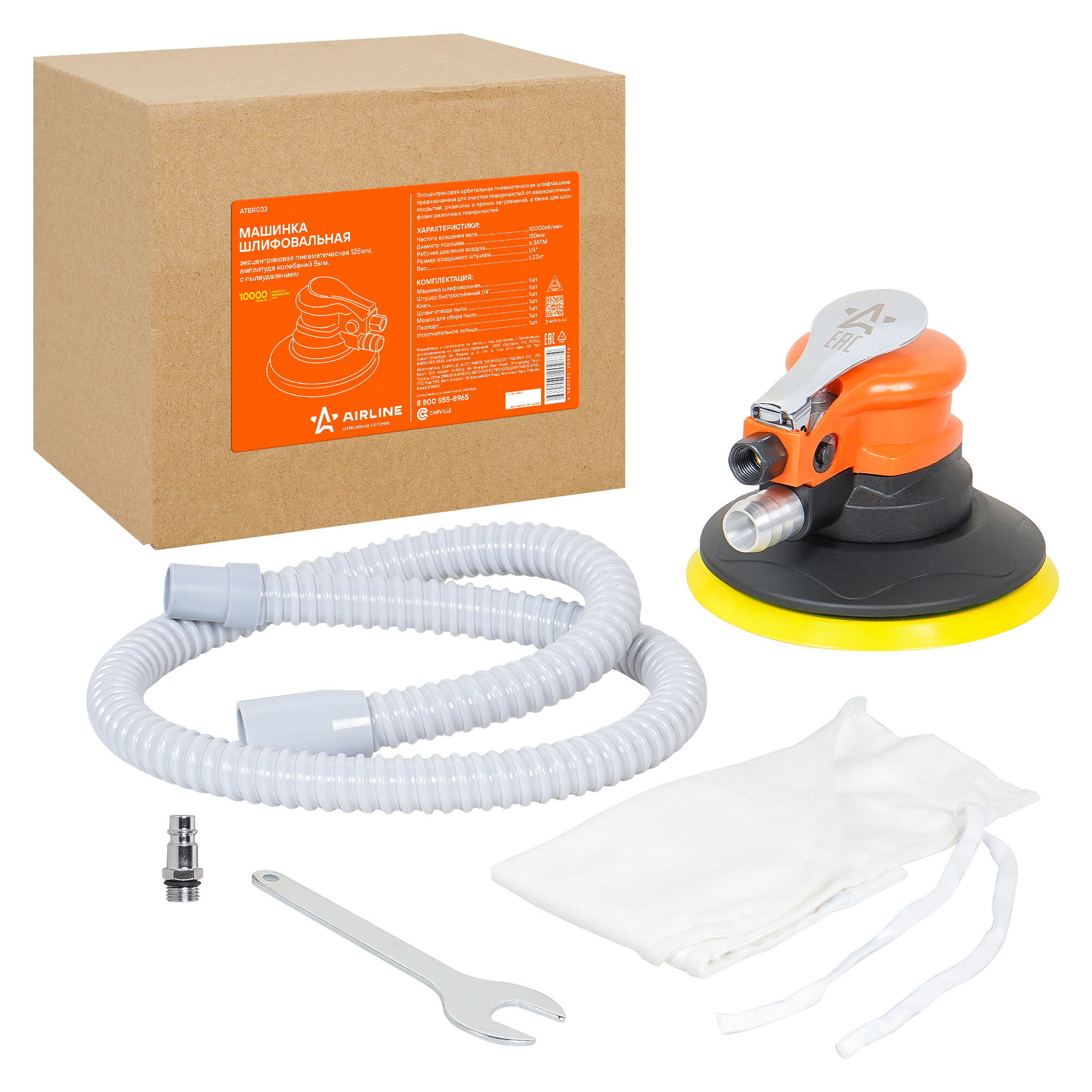 AIRLINE ATBR001 Машинка шлифовальная эксцентриковая пневматическая 125мм, ампл.колеб 5мм, 10000об/мин "AIRLINE"