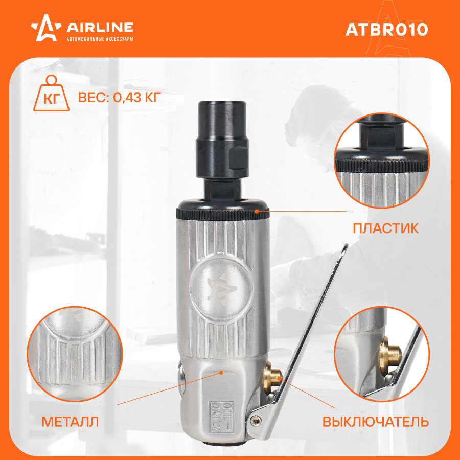 Машинка шлифовальная AIRLINE ATBR003 мини, пневматическая, прямая