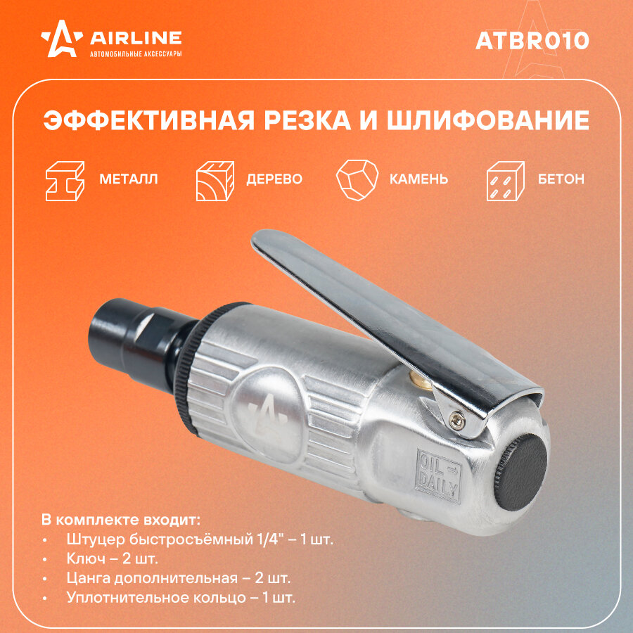 AIRLINE ATBR040 Машинка шлифовальная прямая пневматическая мини с оснасткой 16 предметов кейс