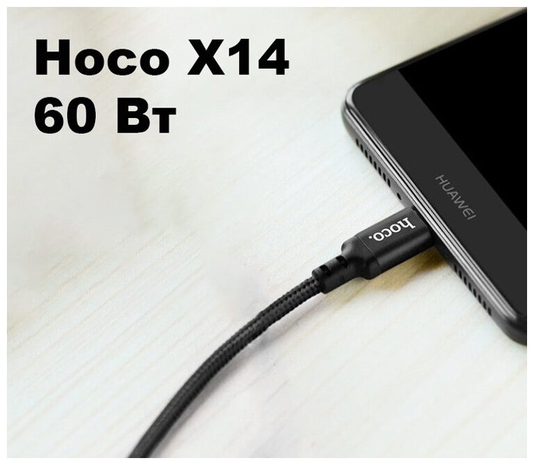 Кабель для смартфона, разъем Type-C, Hoco X14 Double speed, 60W 100 см, черный, 1 шт.