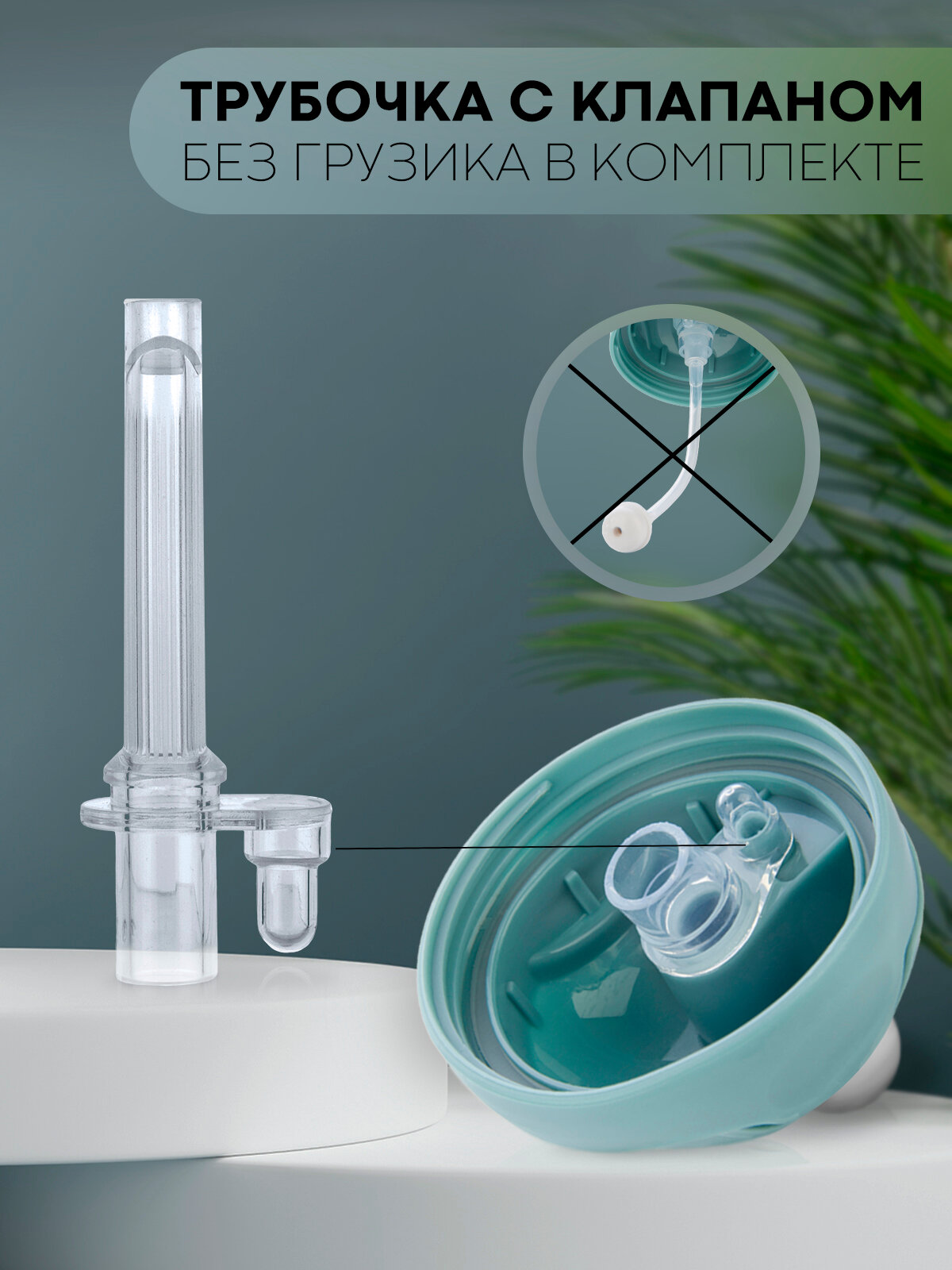 Кружка-поильник с гибкой силиконовой трубочкой и ручками для детей от 5 месяцев (детская бутылочка-непроливайка с крышкой) 300 мл, цвет зелёно-голубой 750 ₽