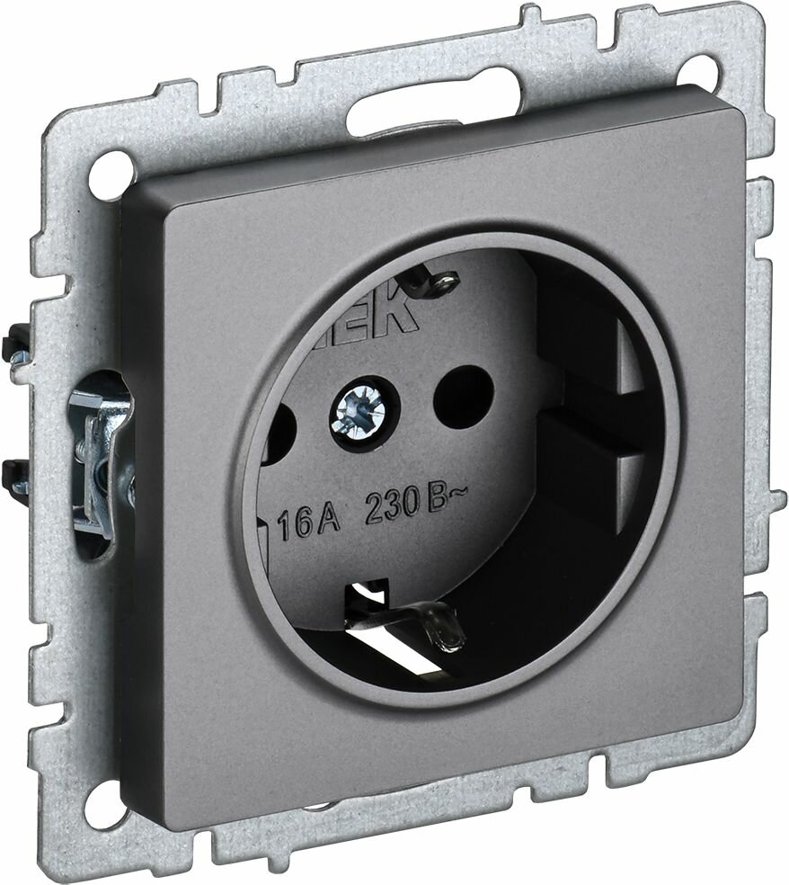 BRITE Розетка с заземлением без защитных шторок 16А РС11-1-0-БрГ графит , IEK BR-R11-16-K53 (1 шт.)