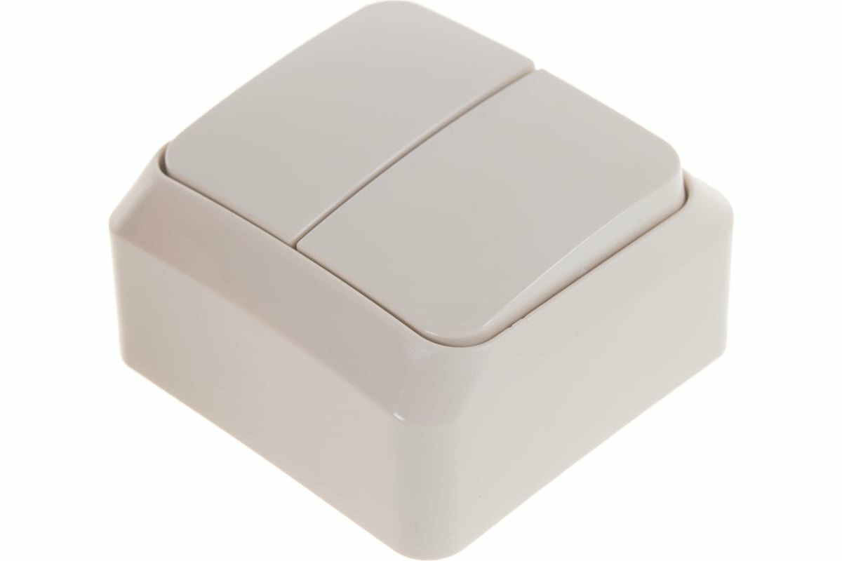 Выключатель двухклавишный Bylectrica Пралеска, брызгозащищенный, открытой установки, 6А, 250В, белый. А5 6-224.