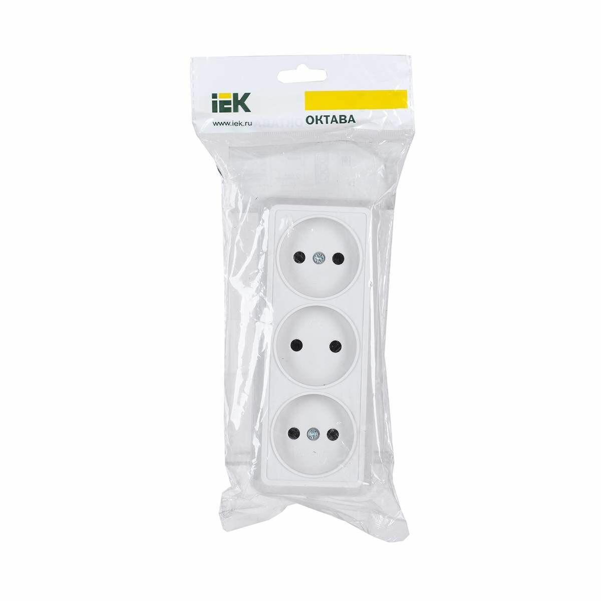 Розетка тройная накладная IEK Октава, без заземления, 10 А, 250 В, IP20, белая
