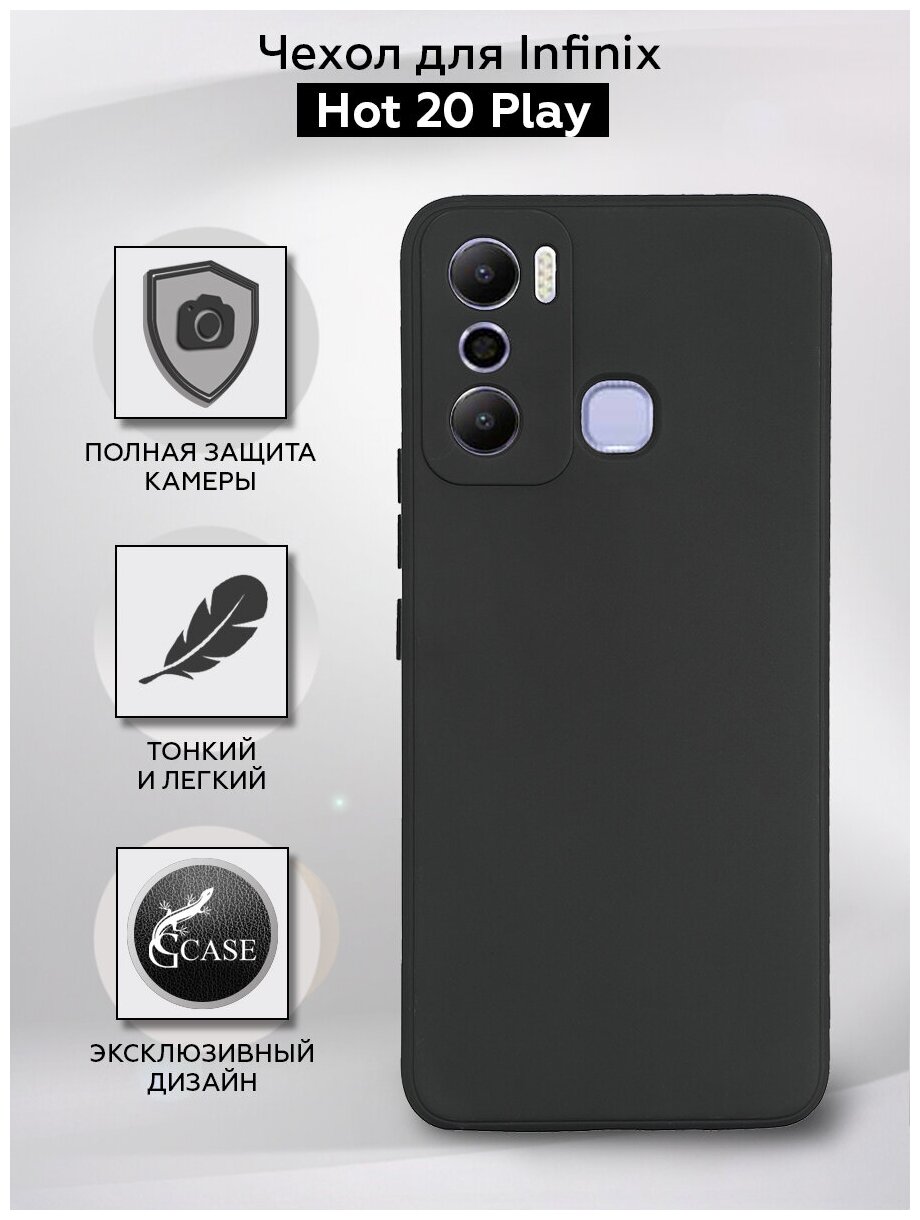 G-Case Силиконовая накладка (с микрофиброй внутри) для Infinix Hot 20 Play, черная