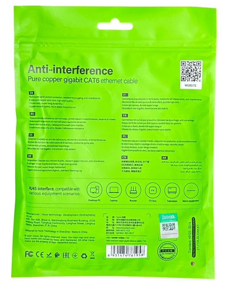 Hoco Патч-корд Hoco US02, RJ45-RJ45 1м, чёрный информация: