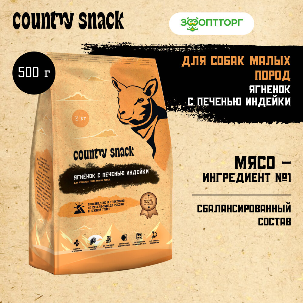 Country snack корм сухой для взрослых собак малых пород Ягненок с печенью, 500 г. информация: