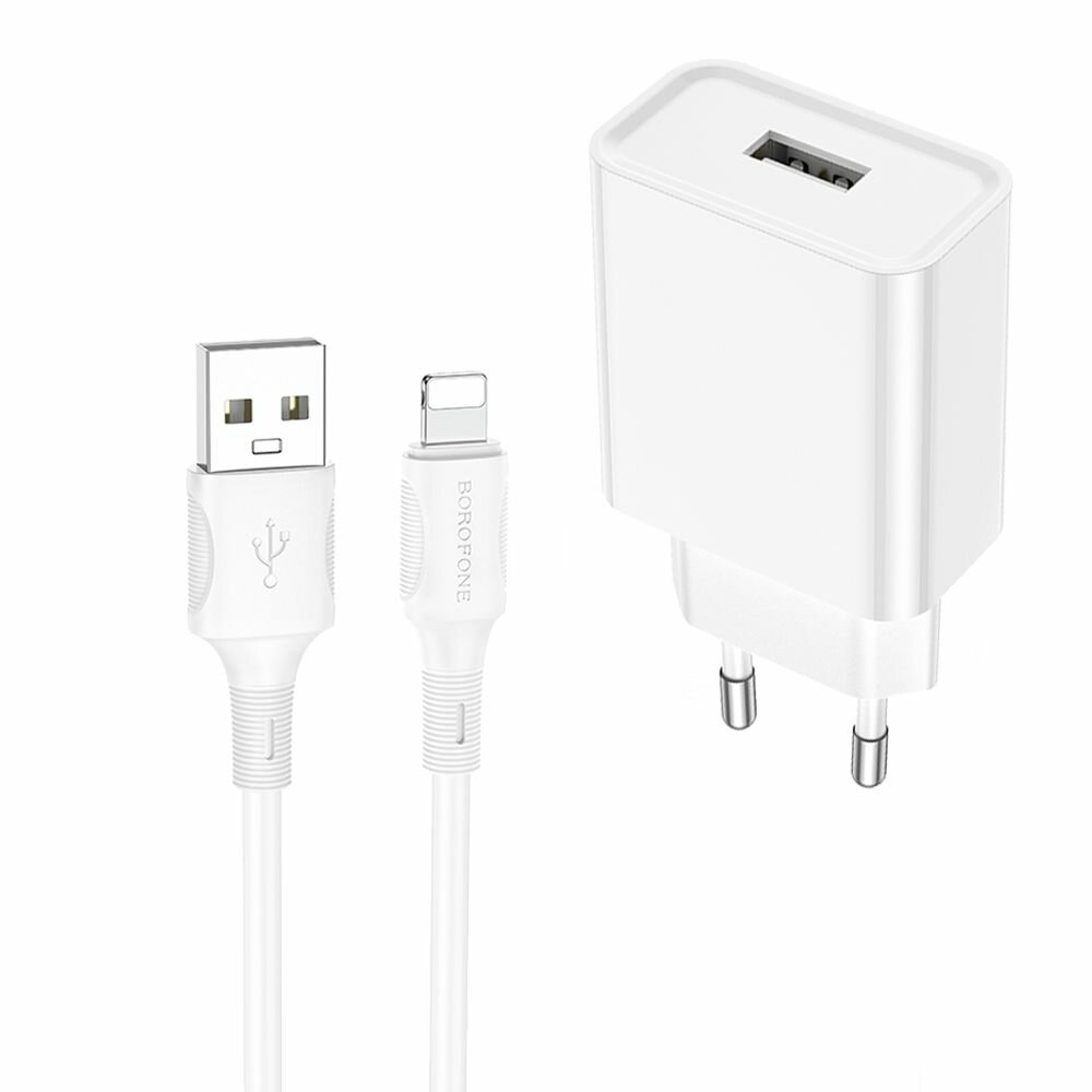 Сетевое ЗУ Borofone BA74A + кабель Lightning (1USB/2.1A) белое