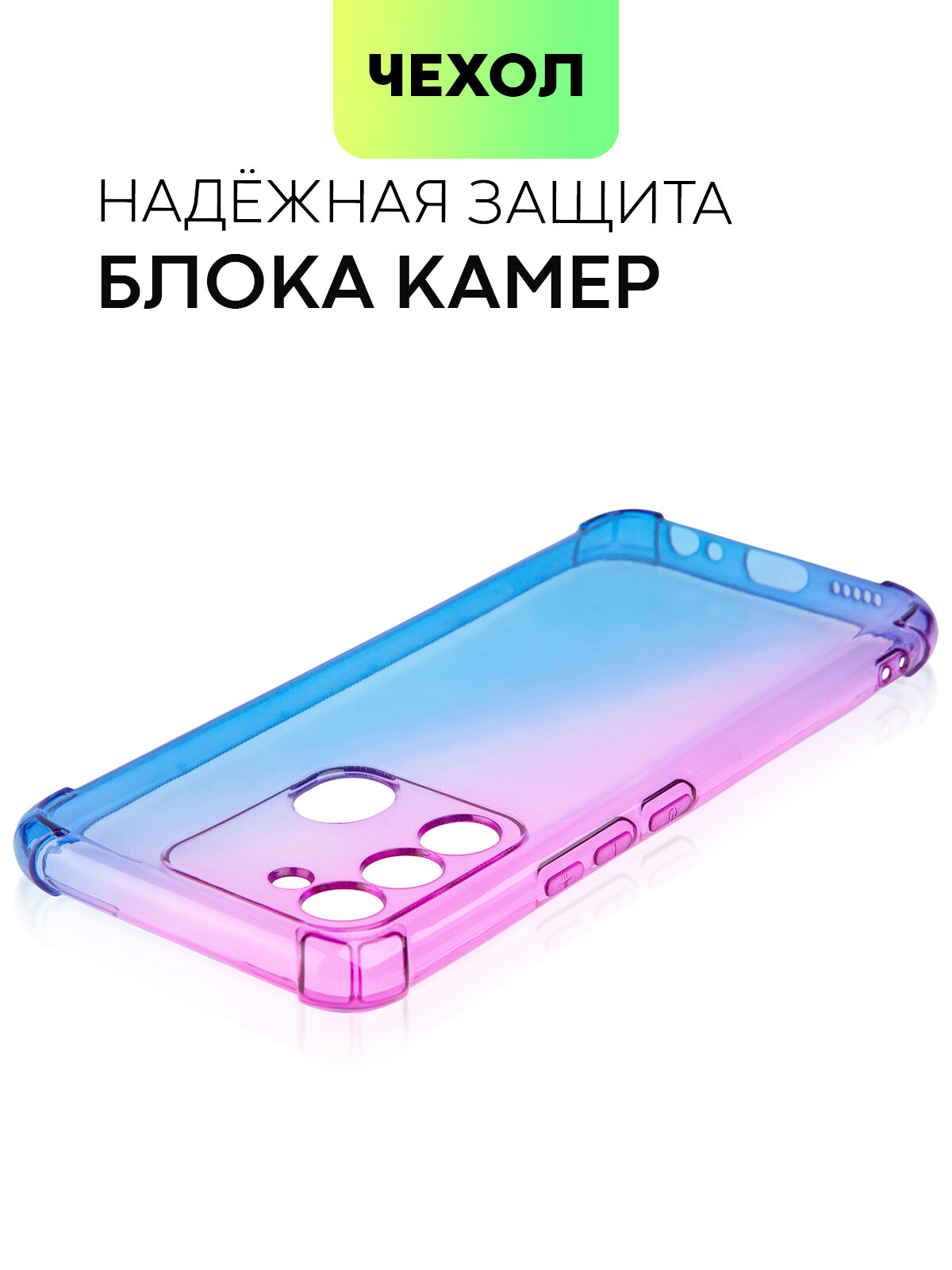 Противоударный чехол для Tecno Spark 8C, прозрачный сиренево-голубой 390 ₽
