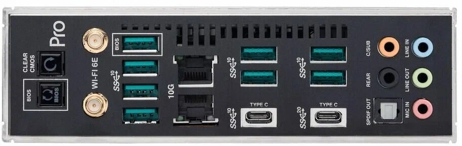 | Разъемы на задней панели | 2 x LAN RJ-45, 7 x USB 3.2 Gen2 Type-A, USB 3.2 Gen1 Type-A, USB 3.2 Gen2 Type-C, USB 3.2 Gen2x2 Type-C, выход S/PDIF оптический |