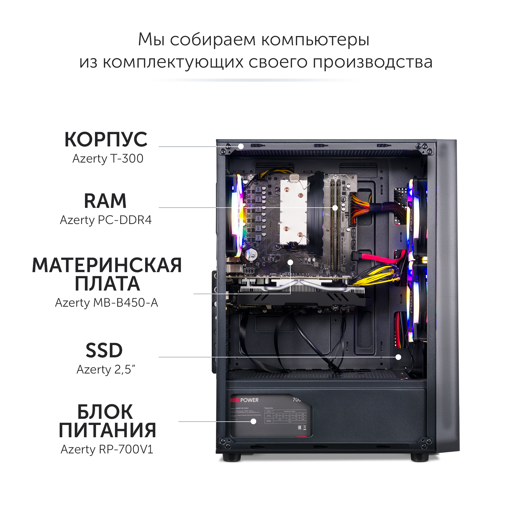 Компьютер игровой AZ-0110 (AMD Ryzen5 1600 6x3.2 ГГц, 16 Гб DDR4, 512 Гб SSD, RX580, Wi-Fi) информация: