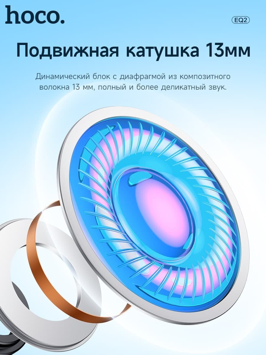 Наушники Hoco Eq2, Tws, беспроводные, вакуумные, BT 5.3, 40/320 мАч, белые Hoco 9881946 2 088 ₽