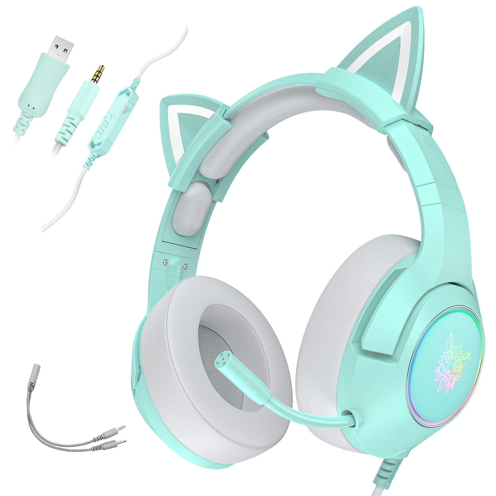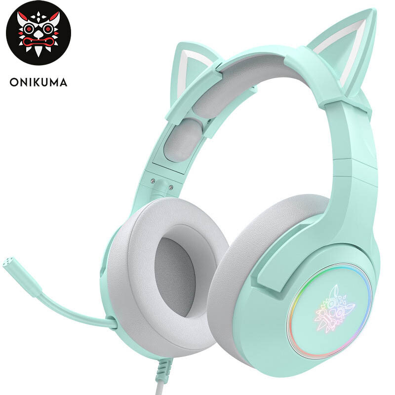 10 цен на Игровые наушники ONIKUMA K9 Electric Cat мятные с кошачьими ушками и подсветкой
