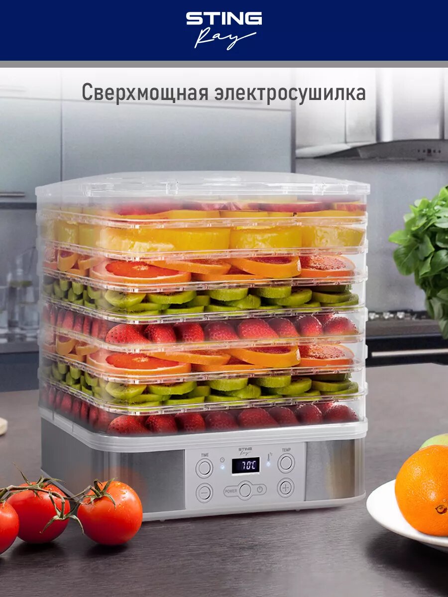 Дегидратор сушилка для овощей электросушилка STINGRAY ST-FD702C 7 поддонов (1 основной + 4 разборных + 2 для пастилы) белый жемчуг