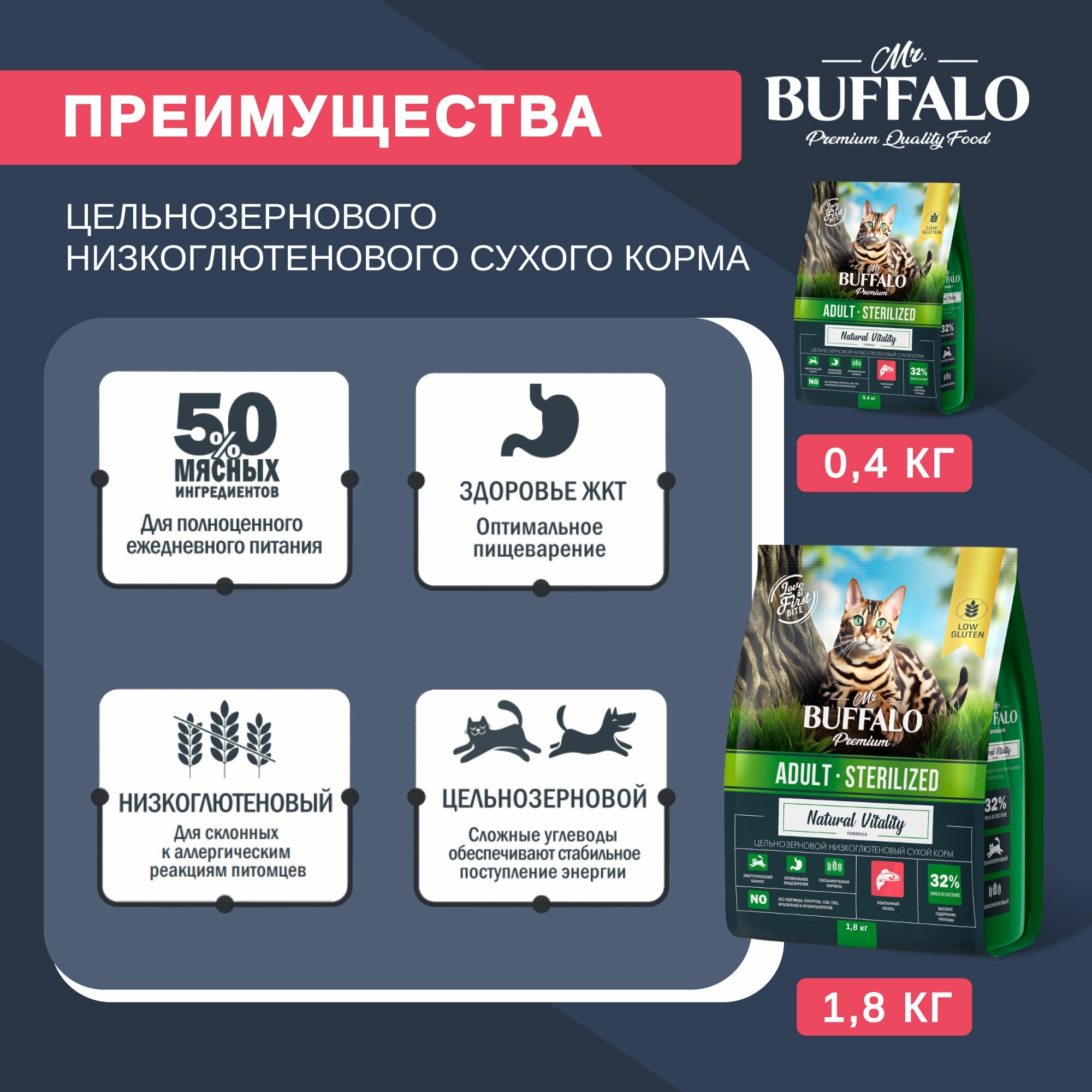 Сухой корм Баффало Mr.Buffalo Sterilized для стерилизованных кошек с Лососем 1,8 кг 1 471 ₽