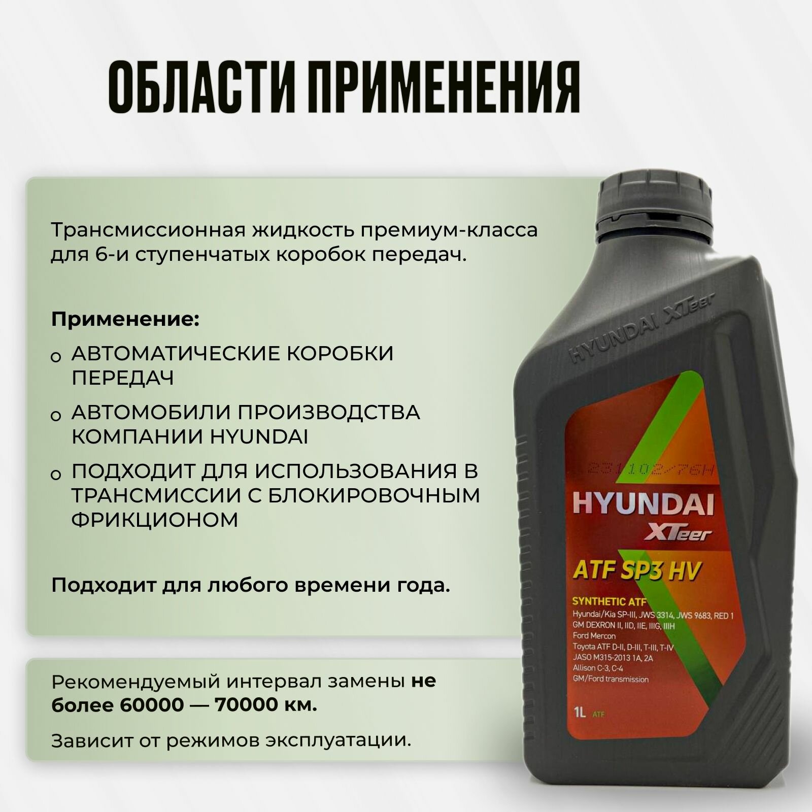 Масло трансмиссионное Hyundai XTeer ATF SP3 (1л) Ребрендинг ATF SP3 HV Арт.1011415 информация: